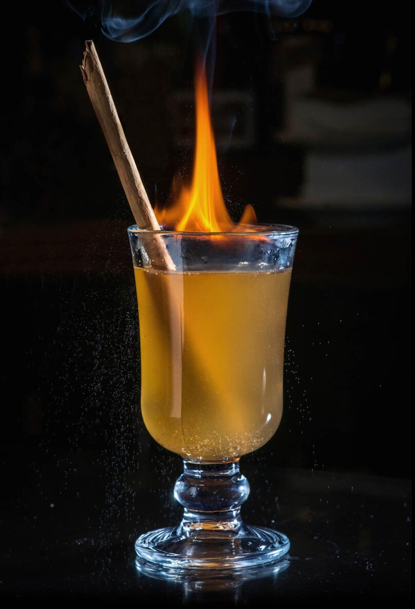 Cinnamon whiskey, honey, and lemon are heated until each sip is akin to a bonfire in your mouth. A festive drink for the colder seasons, and a perfect toast to remember the fallen and light a fire in the hearts of those left behind. May the Witch's Pyre ever burn.