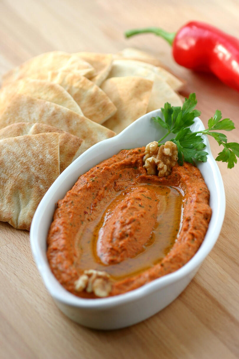 Pomegranate molasses, roasted peppers, and heat-packing spices flavour this walnut-paste dish. A side of naan makes this the perfect finger food for winter!